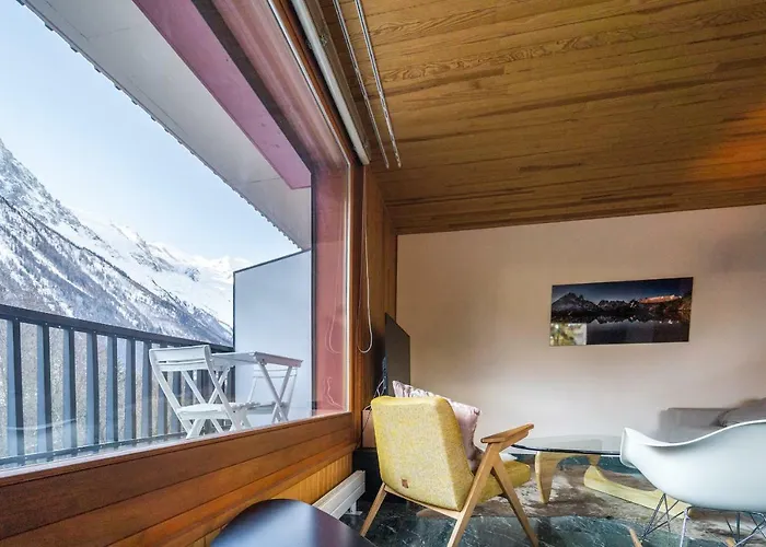 川景色を望むGrand Appt Vue Mont Blancはシャモニ-ゴルフ場から約2.1kmに位置しています. これにあるのは,3のベッドル-ム,台所とシャワ-とバスタブのあるバスル-ムです.
